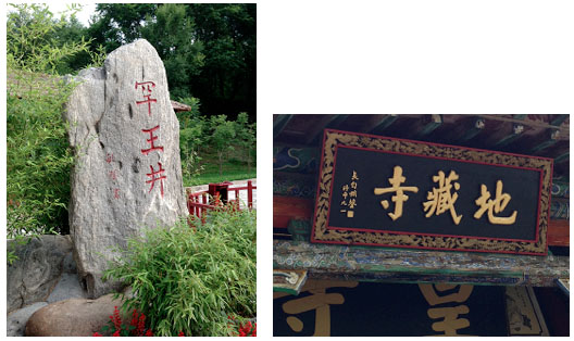 Δ(圖左)赫圖阿拉城「罕王井」與(圖右)之皇家寺廟地藏寺皆由毓老師題匾勒石。