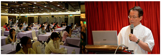 Δ圖說:(圖左)七月觀復讀書會由李忠胤學長負責帶領;(圖右)讀書會後全體同學合影留念。