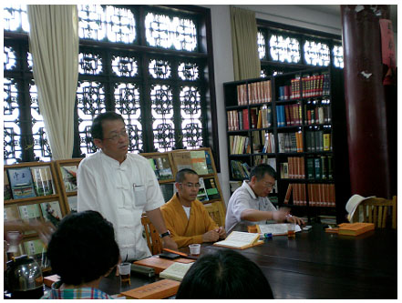 Δ圖說:劉老師與傳定法師(中)「易經與禪宗的對話」,攝於南華寺圖書館