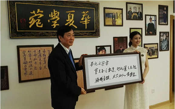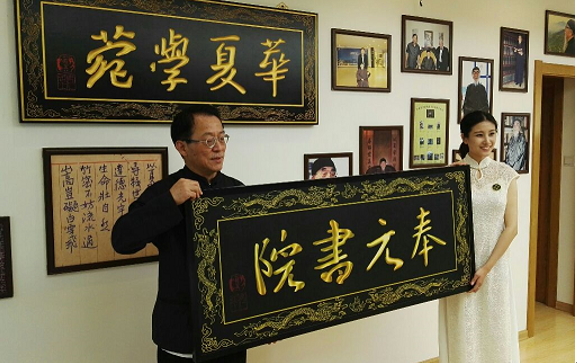 ▲圖說:北京奉元書院負責人董華春老師為華夏寶貝國學館授牌。
