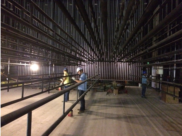 ▲圖說:72根吊桿可掛載布景、道具及各式燈光營造戲劇效果